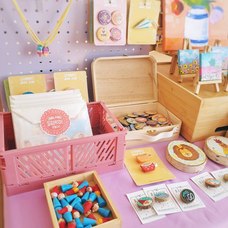Misschien is jouw tasje straks wel helemaal gevuld met dit soort leuke prints, kaartjes, buttons, bundels, broches en stickers.